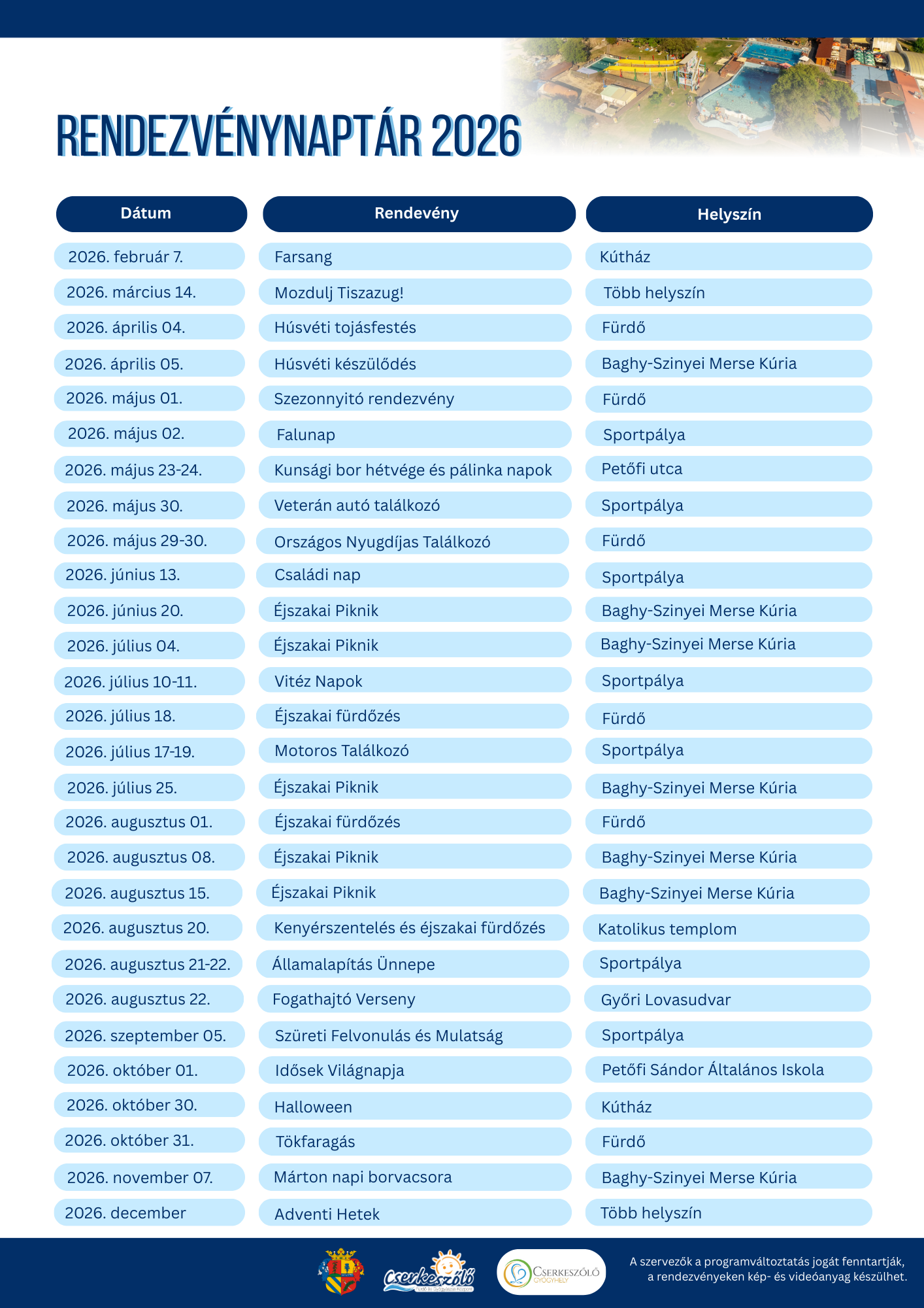 Rendezvénynaptár 2026