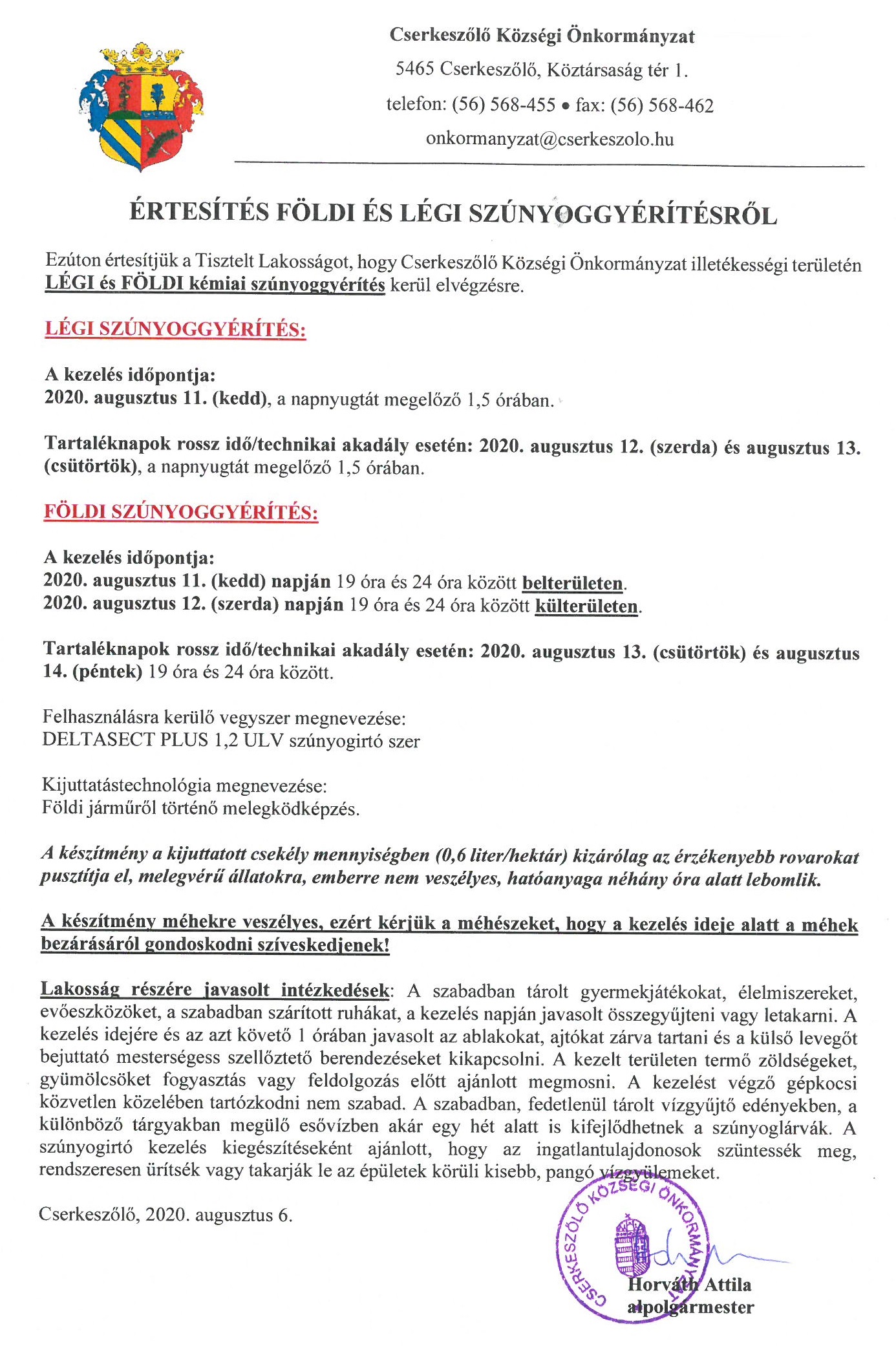 LAKOSSÁGI TÁJÉKOZTATÁS LÉGI ÉS FÖLDI SZÚNYOGGYÉRÍTÉSRŐL