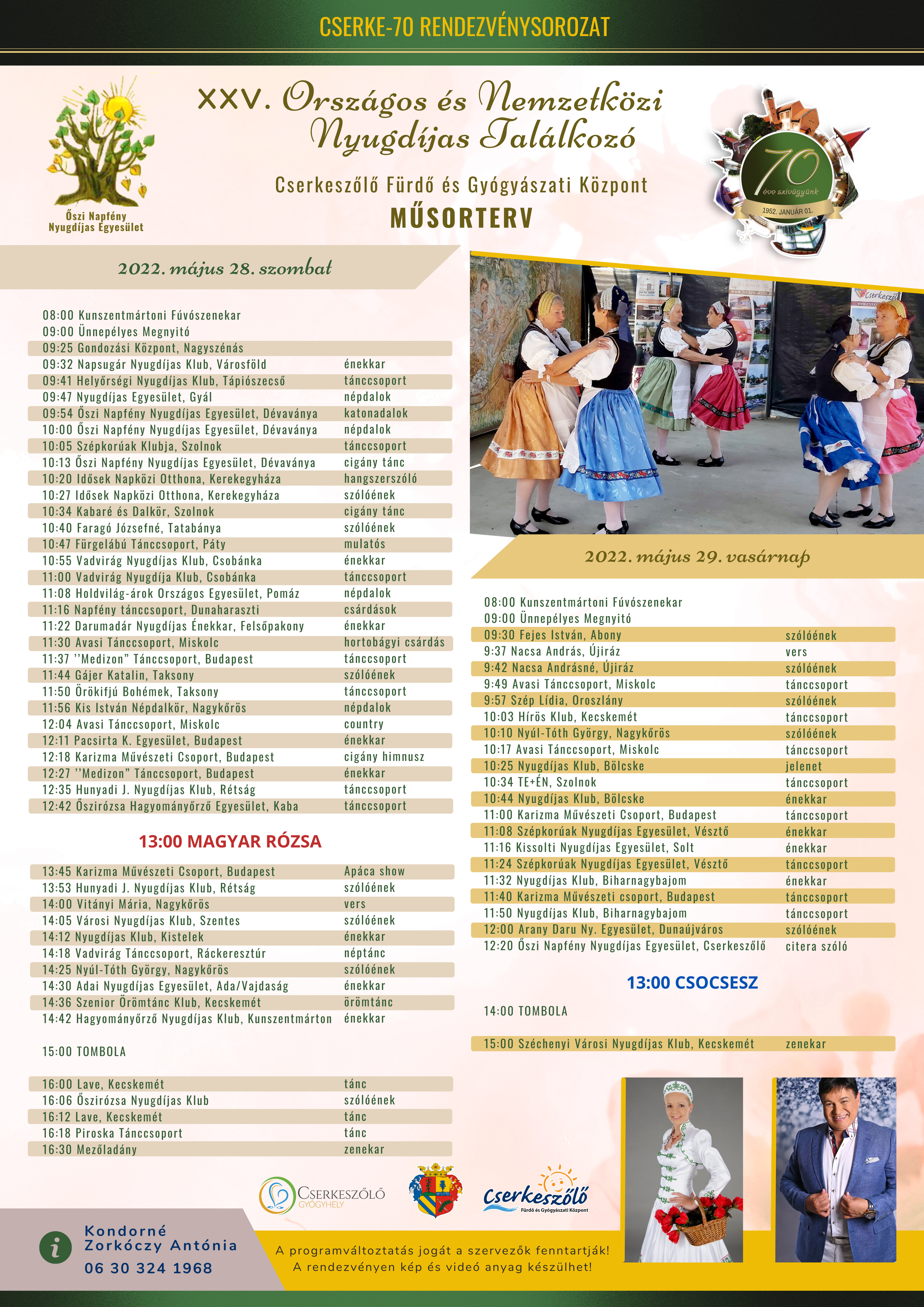 XXV. Országos és Nemzetközi Nyugdíjas Találkozó műsorterve