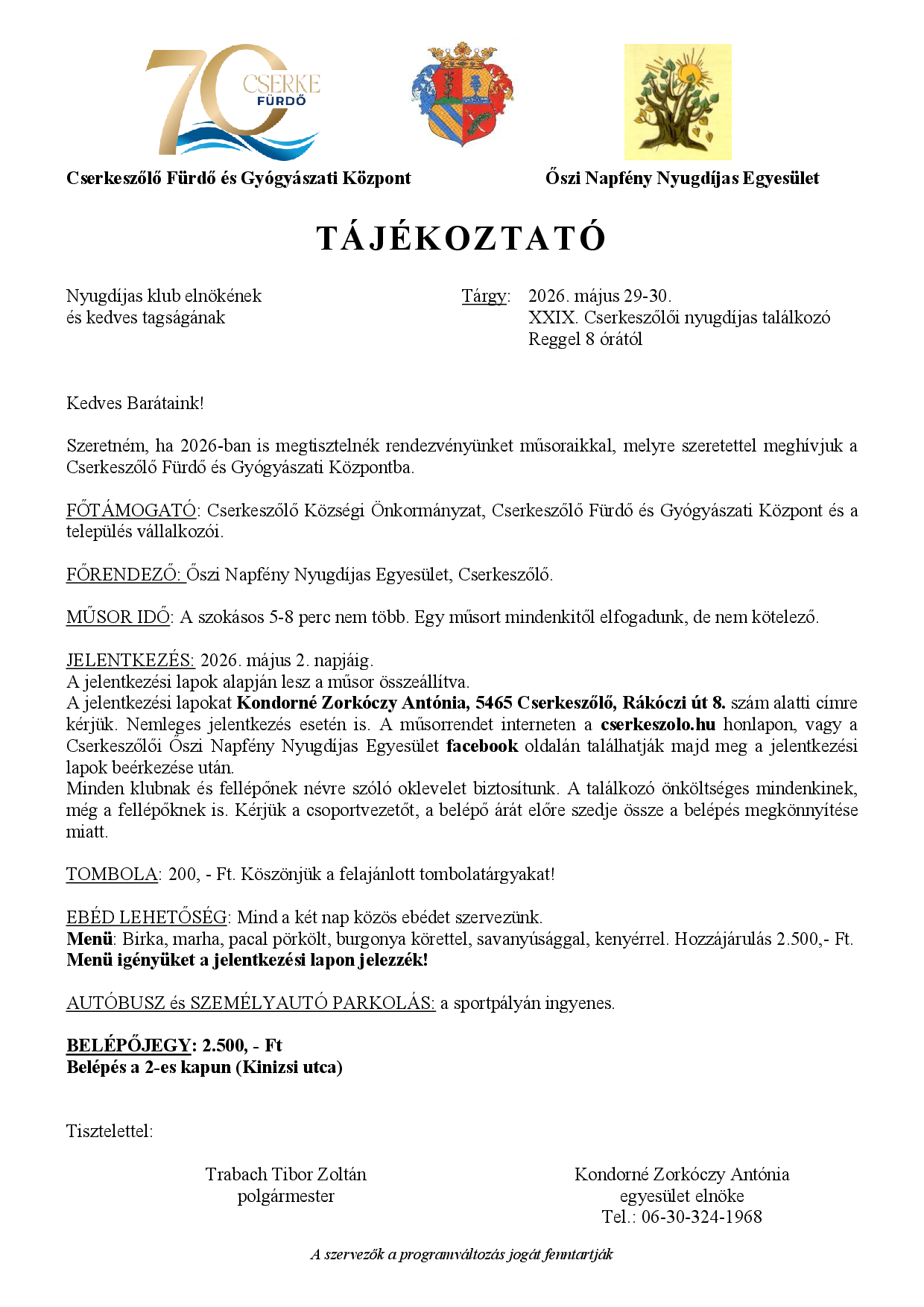 Országos Nyugdíjas Találkozó meghívó és jelentkezés