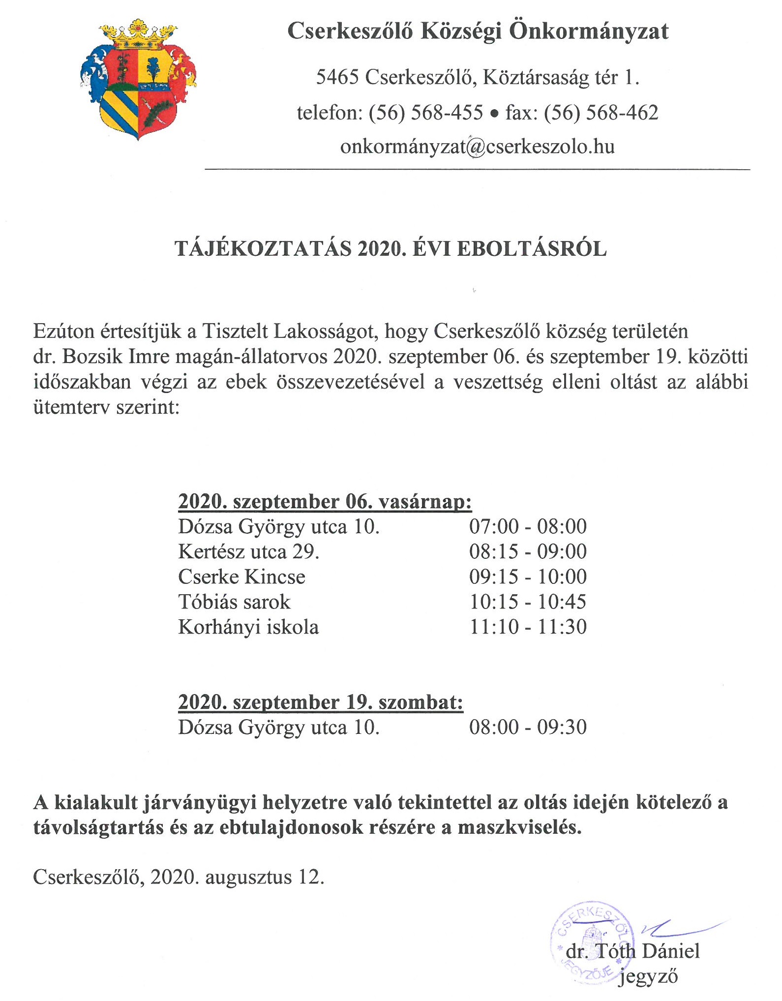 TÁJÉKOZTATÁS EBOLTÁSRÓL